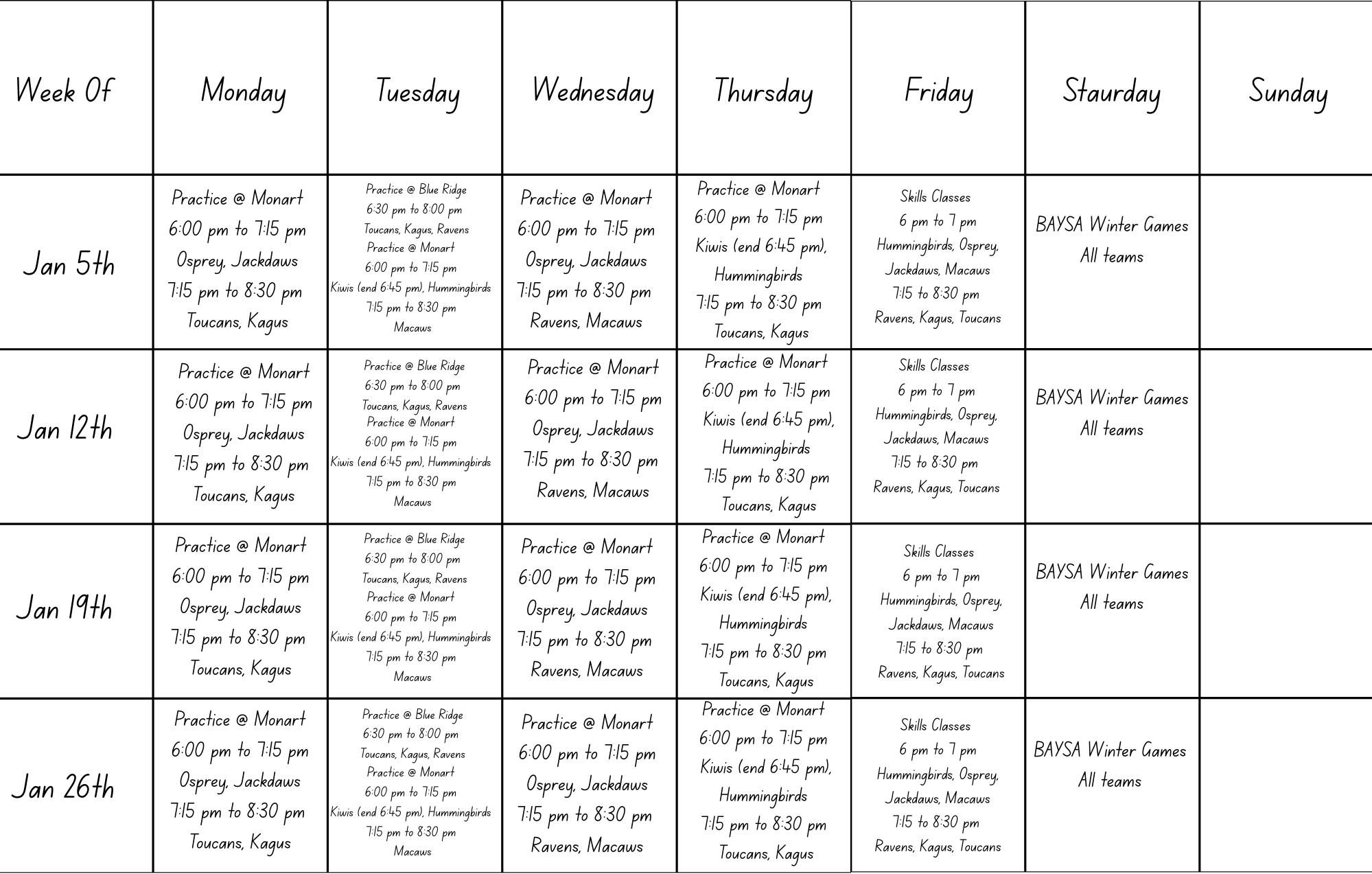 MSC Schedule